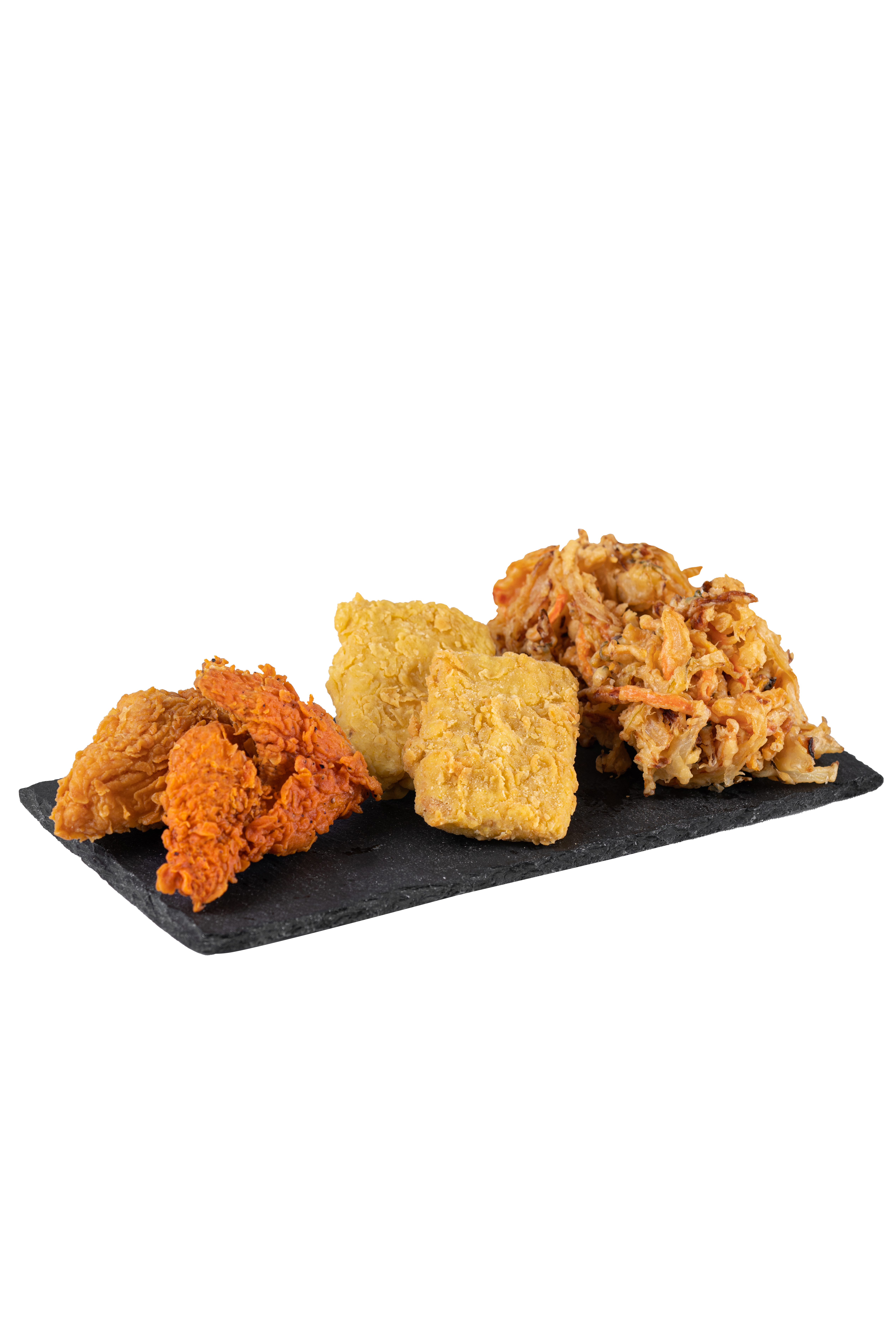 Spicy Fried Chicken, Fried Tempeh and Fried Bakwan, Indonesian staples using Primera Seasoned Flour